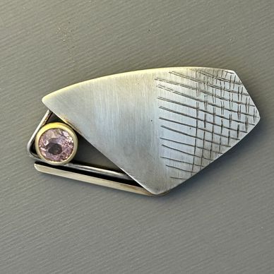 Sterling brooch with 14kt gold and 10mm pink tourmaline